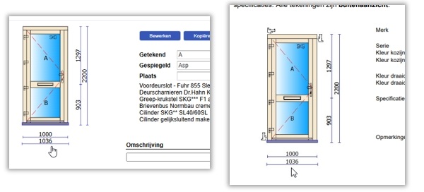 Vervolgens zie je op de overzicht- en offertetekeningen ook de maat 1036mm staan.